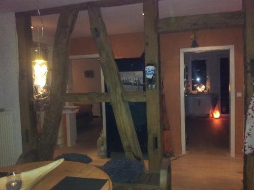Unsere Ferienwohnung im 2. Obergeschoss umfasst ca.90 Quadratmeter und bietet ausreichend Platz für 2 bis 4 Personen. Die 2010 komplett neu ausgebaute Wohnung mit vielen Naturmaterialien wie Dielenparkett, Edelputze und Fachwerk bietet folgende Ausstattung:
