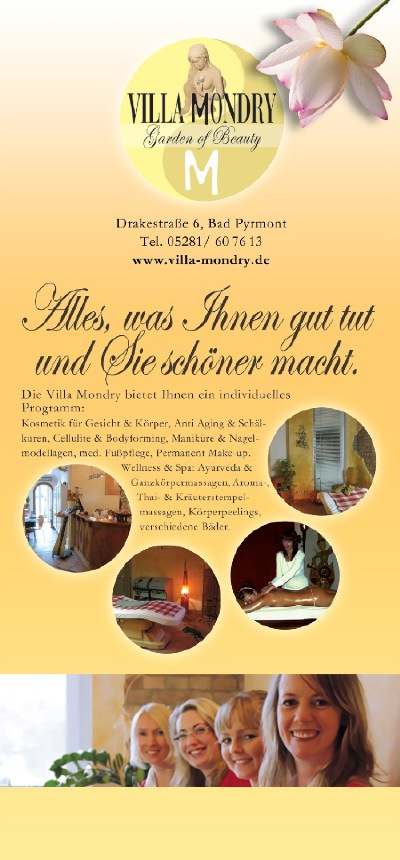 Informationen über unsere Kosmetik & Wellnessetage finden Sie unter www.villa-mondry.de